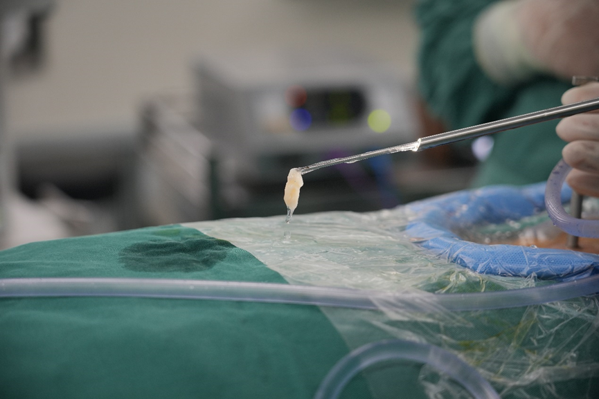 △术中椎间孔镜下取出突出的髓核组织